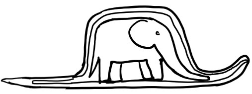 Я показал свой шедевр взрослым и спросил, не пугает ли их мой рисунок. Они мне ответили: «Разве шляпа может испугать?» Мой рисунок не шляпу изображал, а удава, в желудке которого переваривался слон. Пришлось рисовать не закрытого, а открытого удава, чтобы взрослым стало понятно. Вечно нужно им все объяснять. Мой рисунок № 2 был таким: