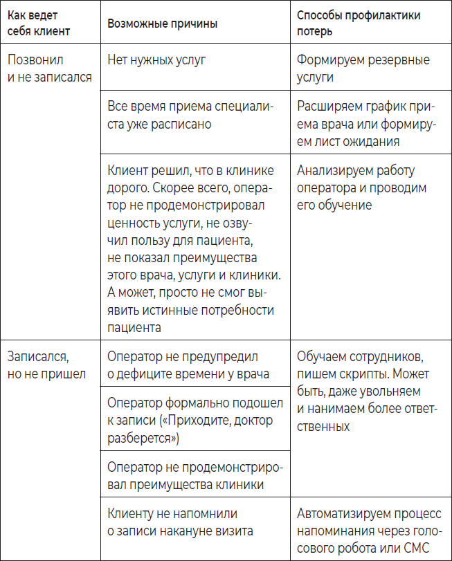 2. Пациент звонит в клинику. Тут возможны две категории потерь: