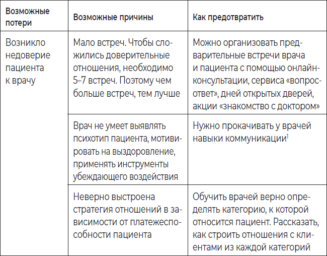 5. Пациент у врача. Что здесь может пойти не так? Для удобства информация сведена в табл. 2.