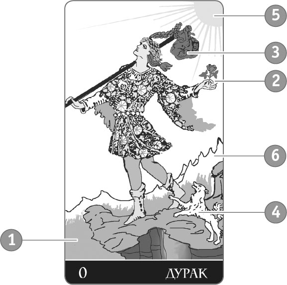 3. Небольшой узелок Шута – символ начала. Шут еще не накопил ни знаний, ни опыта, ни материальных ценностей. Некоторые тарологи считают, что у Шута в узелке атрибуты Мага – жезл, меч, кубок и пентакль, – но он пока не умеет ими пользоваться. Шут – это чистый лист.