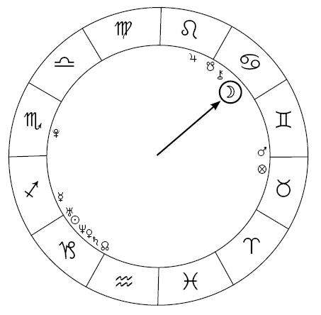 Для лунной магии в этом гороскопе важен только один аспект: положение луны (рис. 1).