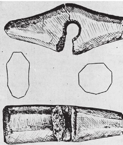 Рис. 1. Немецкий (саксоно-тюрингский) каменный топор, найденный в 1969 году в строительном мусоре, оставленном рабочими, воздвигавшими Московский Кремль [28:1], с. 51
