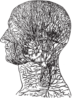 ЦНС лимфатических узлов не имеет. В области головы (рис. 14) имеются затылочные, заушные, шейные (околоушные), нижнечелюстные, подбородочные и другие лимфатические сосуды и узлы. Выделяют также глубокие и поверхностные лимфатические сосуды на голове и шее. Глубокие шейные лимфатические узлы в большом количестве сопровождают яремную вену, а поверхностные лежат вблизи наружной яремной вены. Именно в эти узлы и оттекает лимфа почти от всех лимфатических сосудов головы, шеи, включая выносящие сосуды других лимфатических узлов этих областей.