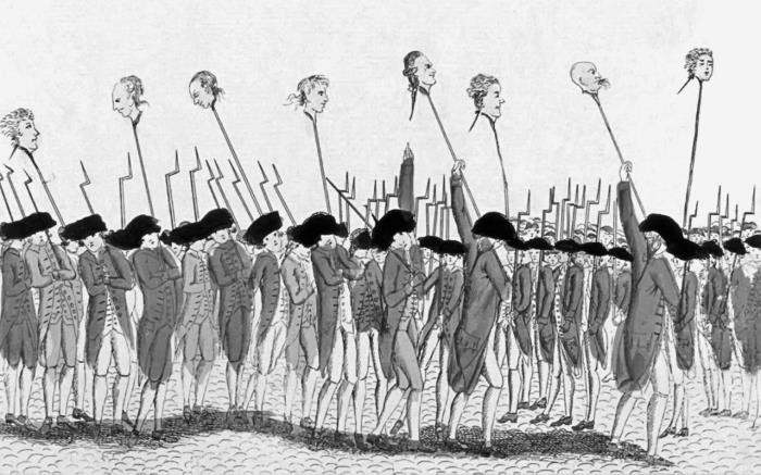 Коменданта Бастилии вели в Ратушу, когда озверевшая толпа отбила старика и тут же растерзала. Целый день качалась на пике голова старого коменданта Бастилии – ее победно носили по Парижу.