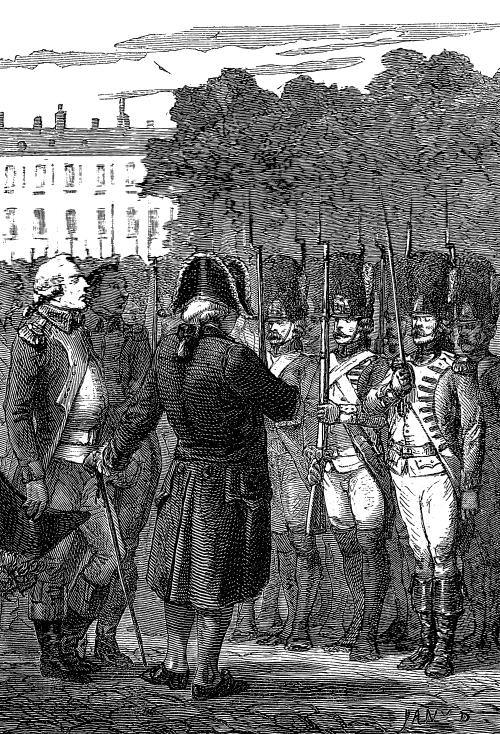 Людовик обходит верные войска. Гравюра XIX в.