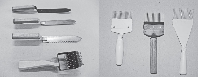 Эти предметы используют только для распечатывания сотов. Нож должен быть хорошо наточенным и нагретым, чтобы не ломать соты.