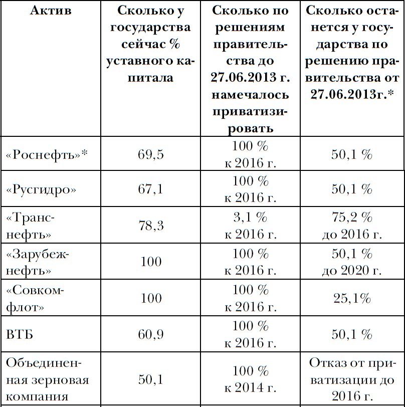 На заседании правительства 25 октября 2013 года премьер-министр назвал «абсолютно неправильным, когда государство в лице контролируемых им структур приобретает профильные и непрофильные активы»[31]. Многими экспертами все это справедливо расценивалось как реальные ограничители для инвестиционной активности государственных компаний. К чему это могло привести? По данным Росстата, доля собственных средств предприятий в источниках инвестиций в 2010–2013 годах была равна 41–46 %. Недостаток собственных средств в условиях высокого процента кредита стал одной из основных причин, ограничивающих инвестиционную деятельность в России. Если бы к этому добавился вообще запрет госкомпаниям приобретать какие-либо активы, это могло закупорить инвестиционную предпринимательскую деятельность.