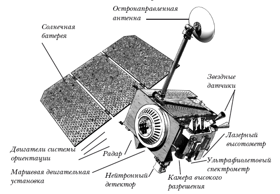 Компоновка автоматической межпланетной станции на примере NASA Lunar Reconnaissance Orbiter (американский спутник на орбите вокруг Луны).