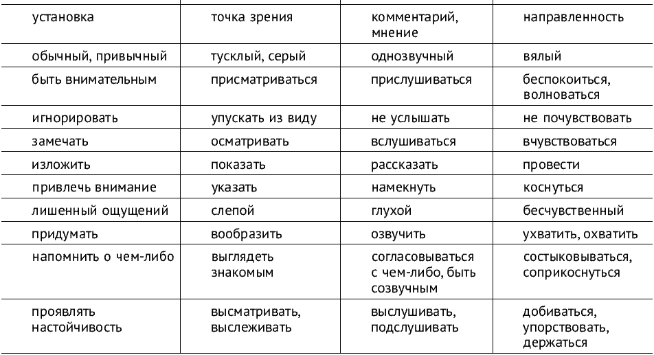 Я вижу, что вы имеете в виду. Внимательно рассматриваю эту идею. Посмотрим глаза в глаза. Смутное представление. Слепое пятно. Покажите, что вы имеете в виду. Посмотрите на это. Прольет немного света. Смотрит на жизнь сквозь розовые очки. Это прояснится – без тени сомнения. Смотреть скептически. Будущее выглядит … Возникло перед глазами. Приятное зрелище. Будущее слишком схематично. Одна из точек зрения. Обрисую ситуацию. Блестящая идея. Заметил один аспект. Это совсем неясно. Встретиться с глазу на глаз. Взгляд на … Раскрою свой план. Это выглядит … Была рассмотрена…