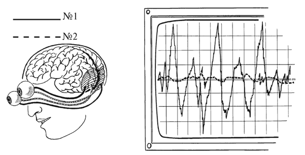 Делаем энцефалограмму, фиксируем работу нужного участка головного мозга. Пользуясь этим методом, можно точно определить, нормальное у этого человека зрение или нет.