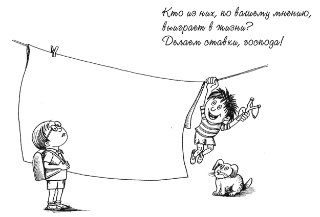 Но нас интересует особая порода, исключения – те, кто не вписывается ни в одну из этих трех групп. В каждом классе таких бывает один-два. Их-то я и назвал условно «хулиганами». Вот эти нарушители порядка и нормы, «белые вороны» тоже разделяются на две категории: добрые и злые.