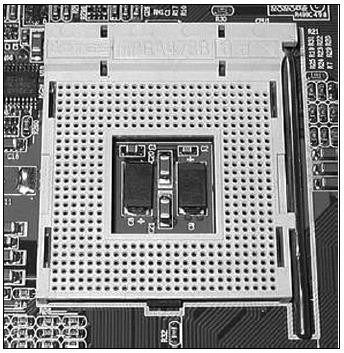 Socket LGA (Land Grid Array) 775Следующая платформа – Socket LGA775 (рис. 2.9). Данная платформа появилась в июне 2004 года и до сих пор является основной платформой Intel. Если вы купите компьютер с процессором Intel, то процессор будет устанавливаться в разъем Socket LGA775.