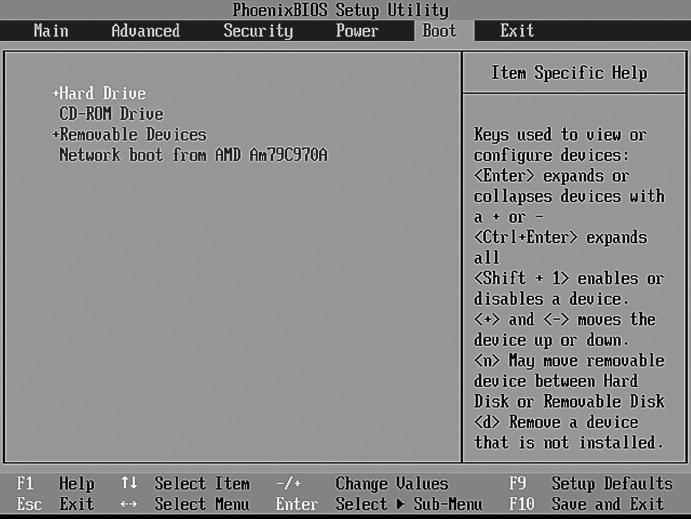 • сменные устройства, например дискета (Removable Devices);