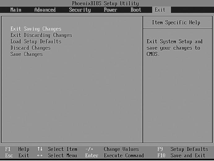 В меню Exit (рис. 5.6) вы найдете следующие команды: