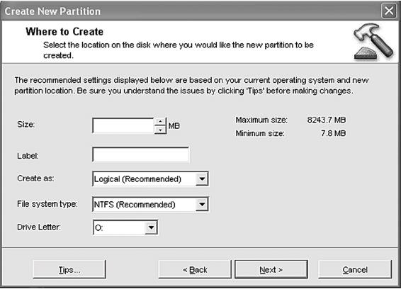 После этого нужно указать физическое местоположение раздела. Тут ничего страшного нет – предлагаемые программой параметры вполне приемлемы, поэтому можно просто нажать кнопку Next.