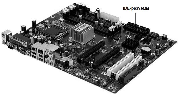 Подключение АТА-диска (IDE)Как правило, на материнской плате есть два контроллера для подключения IDE-дисков – первичный и вторичный. К каждому контроллеру можно подключить два IDE-устройства. Я специально не говорю «два жестких диска», потому что к IDE-контроллеру могут подключаться накопители CD/DVD.[4]