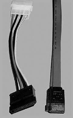 • после подключения SATA-кабеля не забудьте подключить питание к SATA-диску. Обратите внимание: вам нужен специальный кабель питания (3,3 В), который поставляется вместе с жестким диском. Иногда поставляется переходник, позволяющий подключить обычный кабель питания к SATA-диску (рис. 6.6).