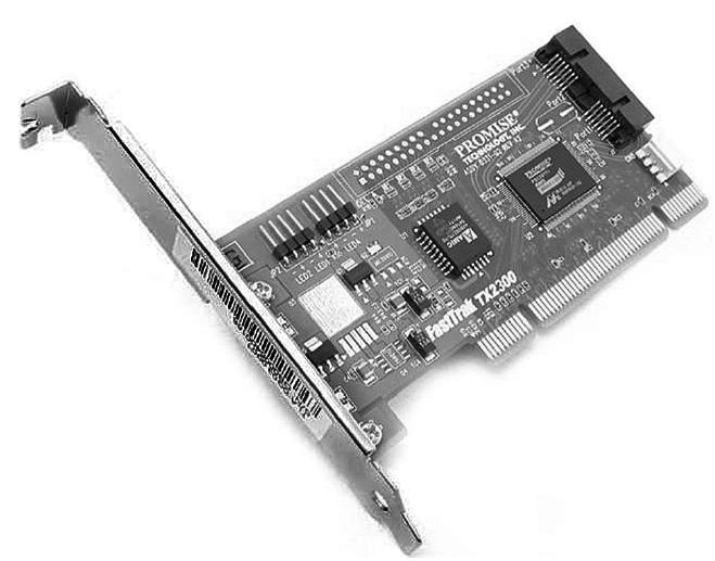 Что делать, если на вашей материнской плате нет SATA-разъема, а SATA-диск уже куплен? Тогда вам нужно приобрести SATA-контроллер (рис. 6.7) стоимостью 600 рублей и подключить SATA-диск к этому контроллеру (SATA-контроллер подключается к шине PCI). Лучше покупать контроллер SATA-2 – и производительность будет выше, и его со временем не придется менять (контроллер SATA-2 стоит ненамного дороже).
