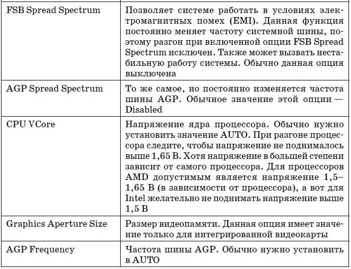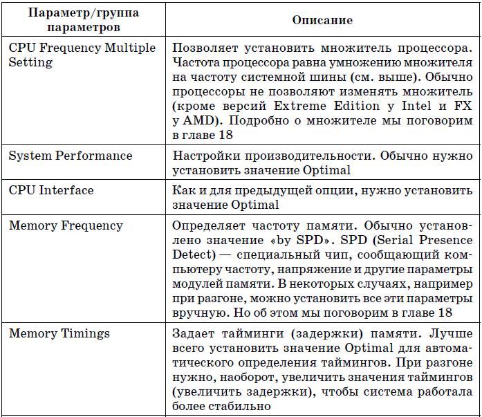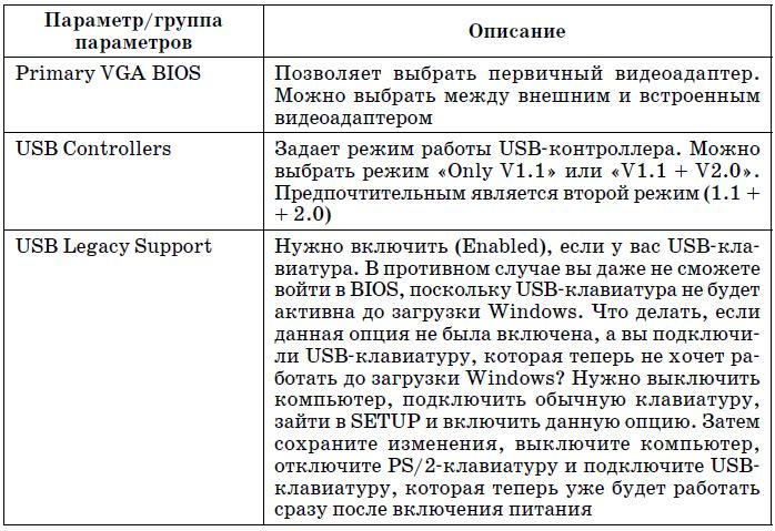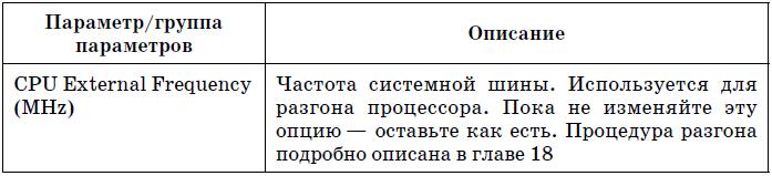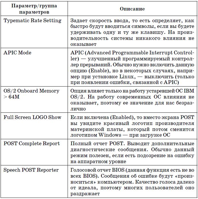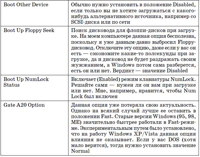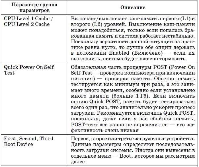 В табл. 5.2 приведены наиболее часто встречающиеся (в разных версиях BIOS) параметры группы Advanced BIOS Features.