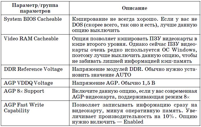 Таблица 5.3. Параметры группыA dvanced Chipset Features