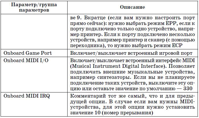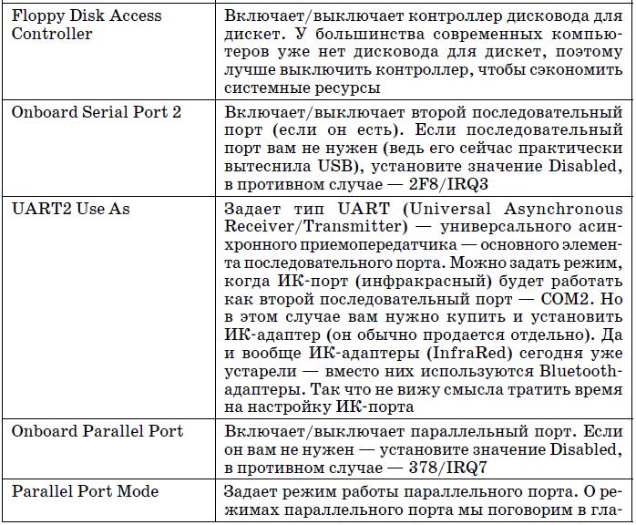 Таблица 5.4. Параметры группы Integrated Peripherals