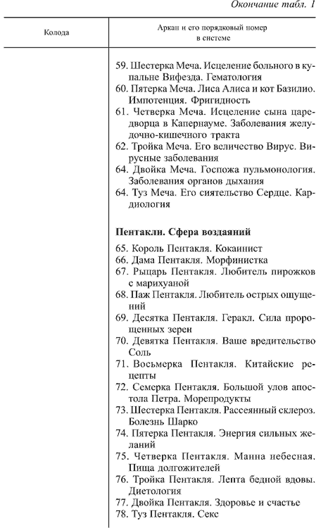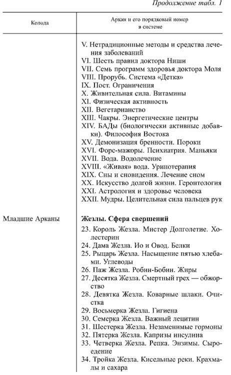 Колоду карт «Таро здоровья, молодости и красоты» вы можете изготовить сами (в тексте дано символическое описание каждого Аркана), тем самым вкладывая в нее свою энергетику. На картах «Таро здоровья, молодости и красоты» символами Арканов будут служить герои мифов, сказок, библейские персонажи. Это делает систему узнаваемой, легко читаемой, доступной. Аспект ассоциаций очень показателен.