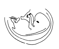 • У эмбриона можно четко различить головной и тазовый конец. Его большая голова наклонена к груди.
