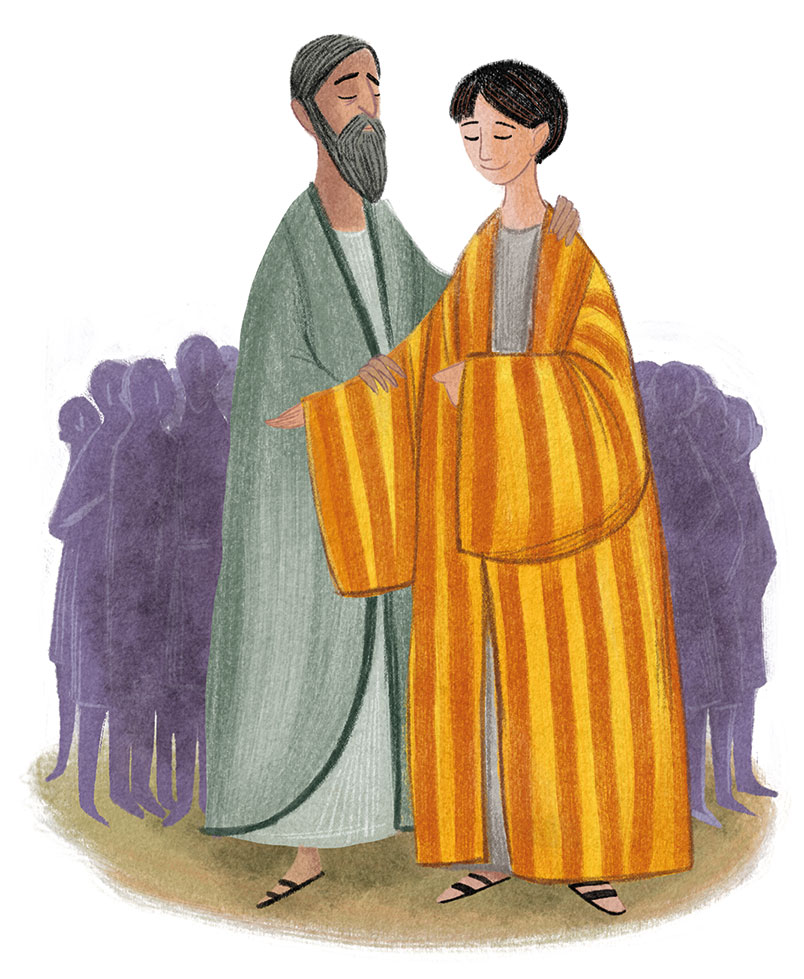 Настали годы изобилия, и Иосиф собрал большие запасы зерна. Настали голодные годы, и Иосиф раздал сбережённое зерно. Многие люди из соседних стран приезжали в Египет за помощью. Иаков тоже сказал своим сыновьям: «Отправляйтесь туда, там есть хлеб, там вы сможете выжить». Он послал туда всех своих сыновей, кроме самого младшего, Вениамина, потому что боялся, что с ним что-нибудь случится.