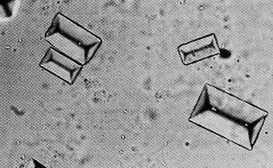 Кристаллы струвита под микроскопом