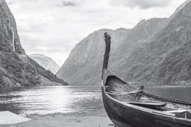 Драккар викингов между Фломом и Гудвангеном, Согнефьор, Норвегия
