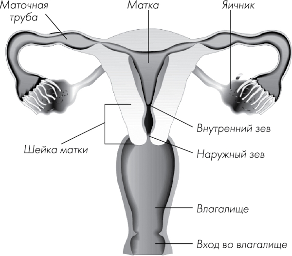 Матка – полый мышечный орган грушевидной формы, расположенный в средней части малого таза, между мочевым пузырем и прямой кишкой. Длина матки взрослой женщины в среднем составляет 6–8 см, ширина – 4–5 см, толщина – 2–3 см, объем ее полости – 5–6 см3. Матка нерожавшей женщины весит около 50 г, рожавшей – несколько больше, около 80 г.