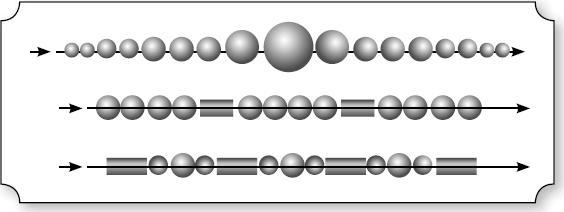 Несколько нитей из бисера или стекляруса можно собрать вместе, пропустив их концы через крупные бусины и закрепив замочки (рис. 4).