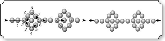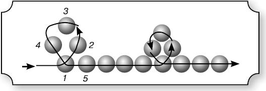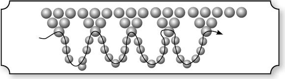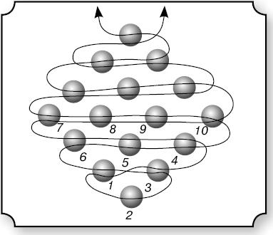Для того чтобы выполнить цепочку «зигзаг», набери на нить пять бисерин, пройди иглой в бисерину 4 и затяни нить. Дальше продолжаем плетение по той же схеме (рис. 10).