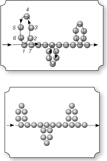 Цепочка «зигзаг» может быть с бугорками. Набери семь бисерин, пройди через бисерину 4, далее по схеме (рис. 11).