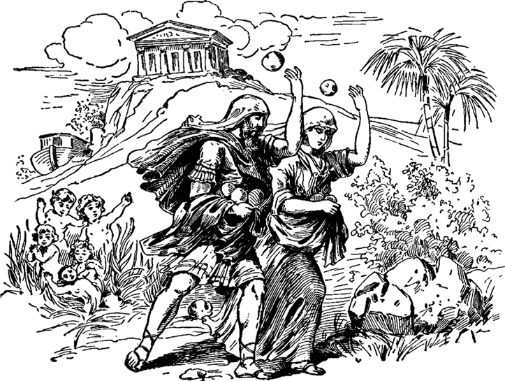 Как только супруги подсохли и отдышались, боги подсказали им надежный способ восстановить население Земли. Для этого надо было идти по полю и кидать назад через голову камешки. Ведь камни – это «кости Земли». Из каждого камня поднимался человек, причем из камней, брошенных Девкалионом, выводился мужчина, а из камней Пирры – женщина. Так как Пирра была проворнее, с тех пор женщин на Земле немного больше. Не ограничившись камнями, Девкалион с Пиррой обычным путем родили дочь и двоих сыновей. Один из них, Эллин, стал родоначальником греков.