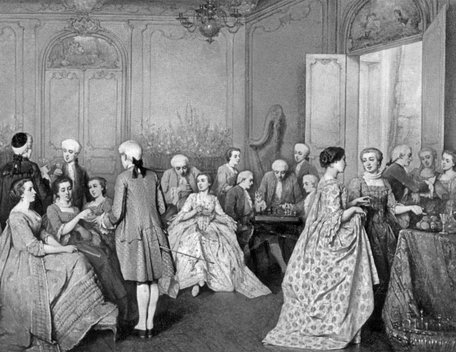 Чтение трагедии Вольтера «Китайский сирота» в салоне мадам Жоффрен.