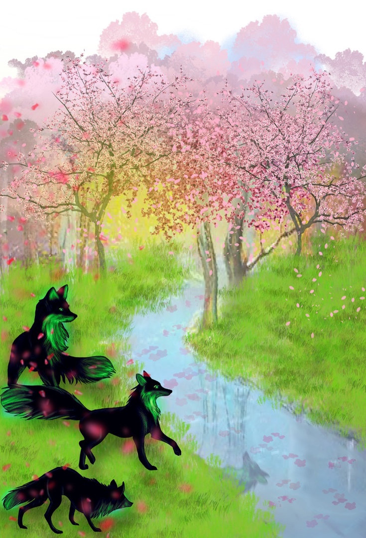 Как ни странно, но мне показалось, что здесь только рассветало. Совсем неподалёку шелестела река, унося в стремительном беге розовые лепестки, обронённые цветущим деревом, крайне похожим на иллюстрации из давно полюбившегося мне аниме.