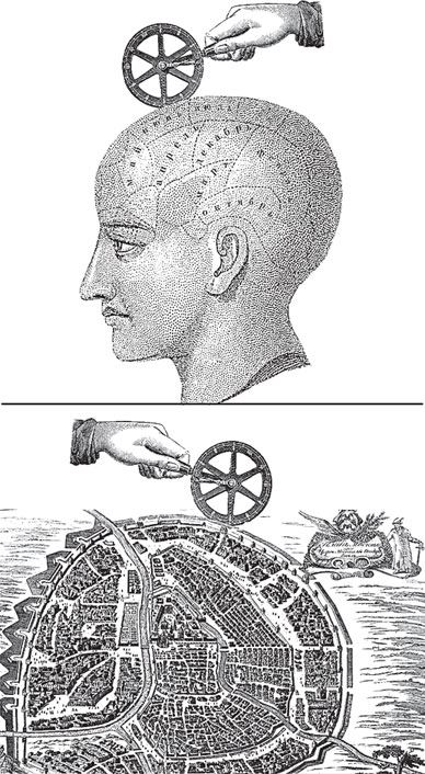 Некоторое время я предполагал оформить эту книгу наподобие комикса; в ней должен был действовать человек Москва (анонимный, праздный персонаж). Но затем явилось это простое соображение: не только он сочиняет Москву, но и она его сочиняет, водит по его голове колесиком календаря. Встречный процесс: выдумывание идеального города и попутное преображение горожанина. Такой сюжет не раскладывается напрямую в комикс – тут требуется рисование иного рода