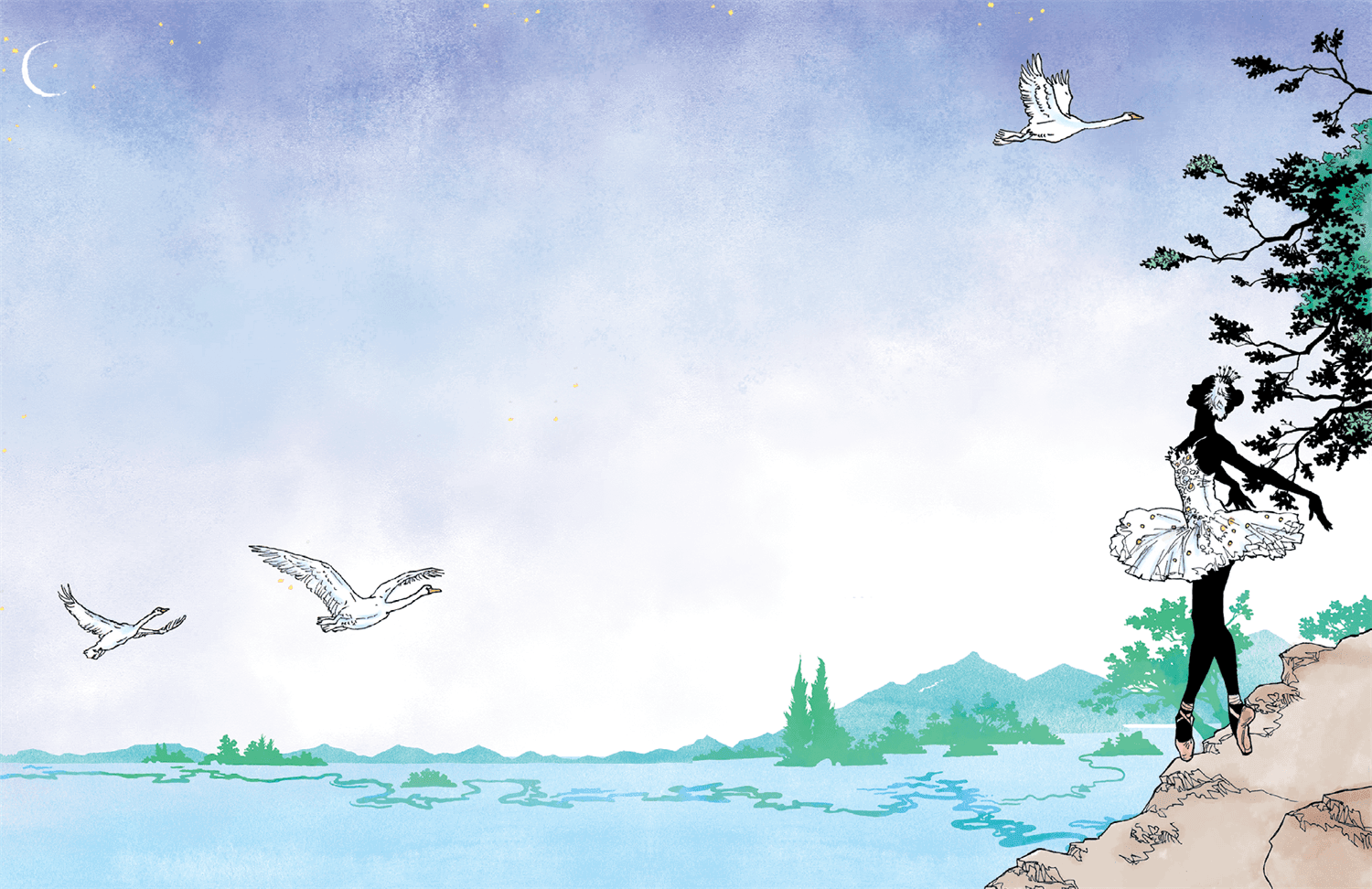 Слова Зигфрида разнеслись по всему лесу и эхом отдались на другом берегу озера. Девушки-лебеди и Одетта смотрели на него, не смея поверить, что чары действительно могут быть разрушены.