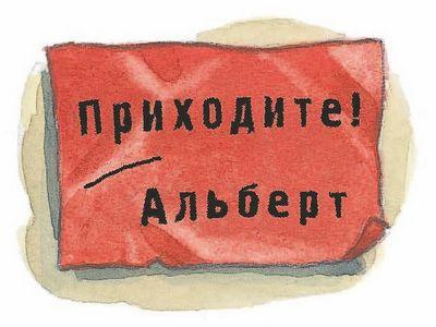 Брат с сестрой только что вернулись домой после летних каникул. Бо́льшую часть лета семья обычно проводила на своей даче в шхерах. Едва дети внесли сумки в свою комнату, как сразу же набросились на целую груду почты, скопившуюся в их отсутствие. За всё время им никто не прислал ни письма, ни открытки, зато в самом низу они нашли маленький клочок красной бумаги, на котором чёрным фломастером было написано: «Приходите! Альберт».