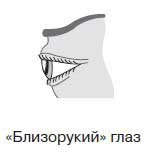 Тип глаза. «Близорукий»: глаз находится в продольной, узко прорезанной глазной щели, внешний угол век приподнят. Брови приподняты к вискам, ресницы густые и короткие.
