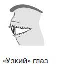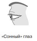 Тип глаза. «Узкий»: глаз находится в узкой глазной щели, без блеска, зрачок со слабой реакцией на свет. Брови в виде правильной дуги, ресницы длинные и редкие.