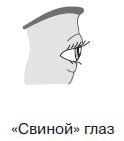 Тип глаза. «Свиной»: маленький глаз находится в очень узкой глазной щели, веки тяжелые, зрачок «бегающий». Брови и ресницы небольшие, редкие.