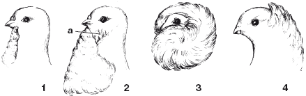 1 – манишка («бант»); 2 – жабо («подушка») и воротничок (а) у китайских чаек; 3 – парик-мех; 4 – грива
