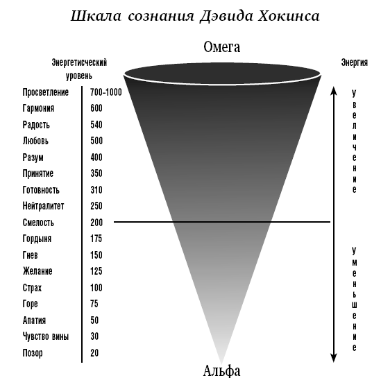Дэвид Хокинс – психиатр, исследователь, доктор медицинских наук, тридцать лет посвятил изучению уровней сознания и их связей с нашим телом и реальностью. В итоге он вывел систему, которая прекрасно пересекается с процессами развития мира, стран и каждого конкретного человека в частности. Она дает структурированное понимание, как движение по уровням нашего сознания влияет на эмоции, которые характеризуют эти уровни, и наоборот.