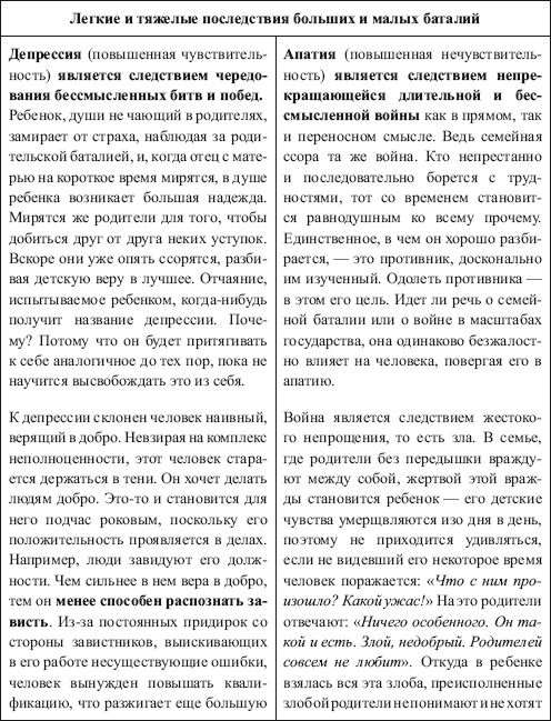 Из-за пережитых страданий, причиненных нам неким человеком, мы становимся к нему равнодушными и безучастными. Если человек этот посторонний, тогда еще ничего. С чужими мы не обязаны общаться и не общаемся. Проблема осложняется, если речь идет о родителях, и особенно матери, с одной стороны, и ребенке, с другой. На свете нет более горького разочарования, чем разочарование в материнской любви. Если оно воздействует постепенно, ребенок озлобляется на весь мир и особенно на женский пол. В женщинах он видит врага. А заодно и в мужчинах, ибо те преклоняются перед женщинами.