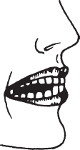 Глубокий прикус – верхние резцы слишком глубоко перекрывают нижние, так что последние почти не видны. При такой аномалии прикуса бывает трудно обеспечить хотя бы небольшое расстояние между верхними и нижними резцами для прохода выдыхаемого во время речи воздуха. Это приводит к зажатости при произнесении звуков и неотчетливости их звучания.