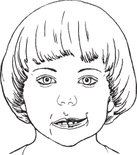 2. Асимметричность улыбки («оскала») при растягивании губ в стороны. Одна сторона рта при этом остается неподвижной или совершает минимальное движение (рис. 8).