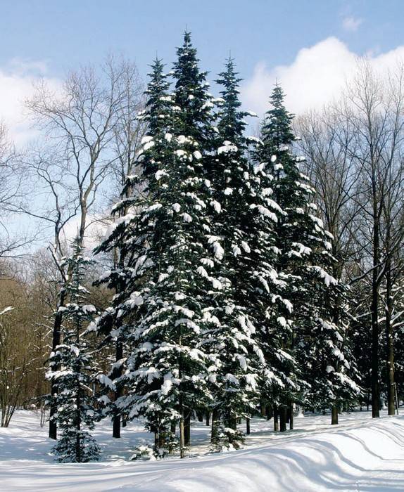Разнообразие формы кроны, окраски хвои, размеров деревьев позволяет использовать виды елей в различных типах насаждений – солитерно, группами, в стригущихся изгородях и даже в рокариях.