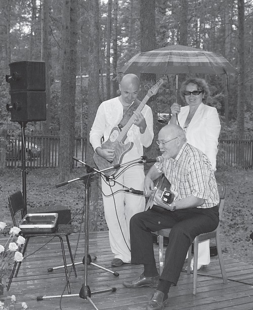 А еще удача этой встречи в том, что нас столько, сколько есть. А то представим себе, что нас, скажем, в пять раз больше, а представить это очень просто. И вытоптанный участок, и все такое… И уже как-то совершенно неважно, станет это повторяющимся каким-то событием, это 23 июня или нет. В моей памяти останутся, вот эта группа – две прелестные женщины, которые держат зонты над двумя такими лысыми мощными мужиками. И Игорь совершенно замечательно аккомпанировал, как-то он остался незамечен, а я думаю, что на обратном пути в Москву я как-нибудь подговорю, пусть и мне тоже поаккомпанирует, неизвестно чему, но мы сообразим, потому что это совершенно замечательный артист. Ну вот. Не хотелось бы так, между прочим, на полуслове кончать, так что я два стихотворения (два!) прочту, и уже мы разойдемся. На память, я, конечно, не помню, потому что одно написал сто лет назад, другое двести. Одно написано незадолго до ее смерти, второе сразу после ее смерти. Из первого она взяла строчку на эпиграф, так же, как «Вы напишите о нас наискосок» к стихотворению, посвященному Бродскому. А из моего строчку «Ваша горькая божественная речь» для стихотворения, которое посвятила мне. То же проделала и с Бобышевым, посвятив ему «Пятую розу». (Снова пошел дождь.)